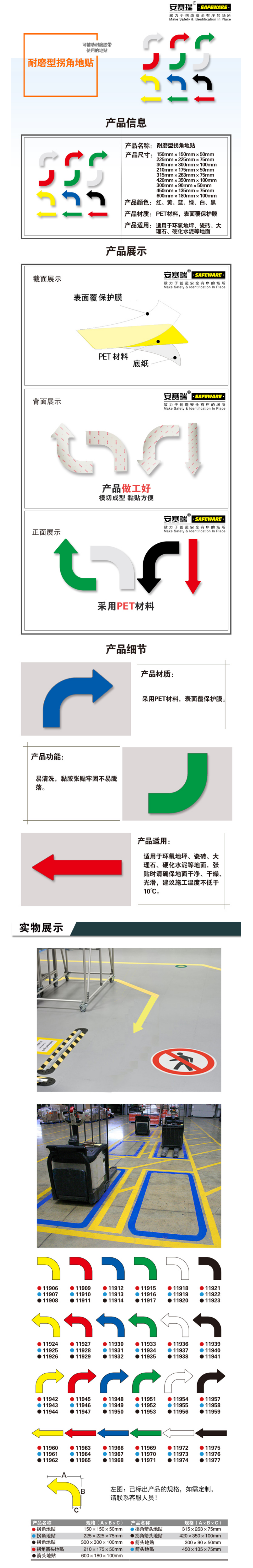 拐角箭头地贴 10片装 蓝 420×350×100mm|420×350×100mm|安赛瑞/Safeware