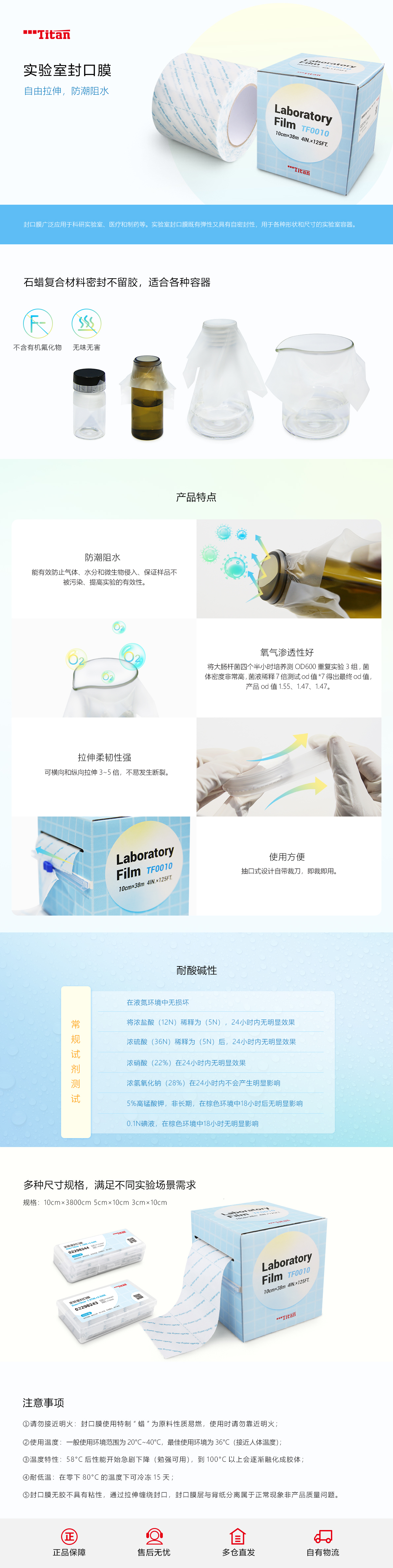 实验室封口膜 10cm×38m (4IN.×125FT.)|10cm×38m|Titan/泰坦