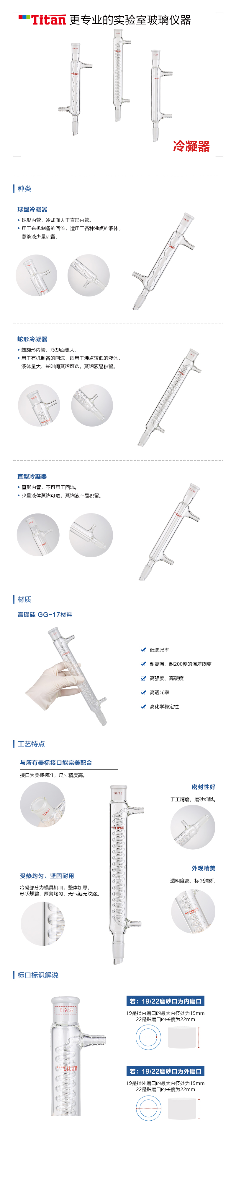 球型冷凝器 磨口:24/40,有效长度:200mm,小咀外径:10mm 特优级 爆款|200mm|Titan/泰坦