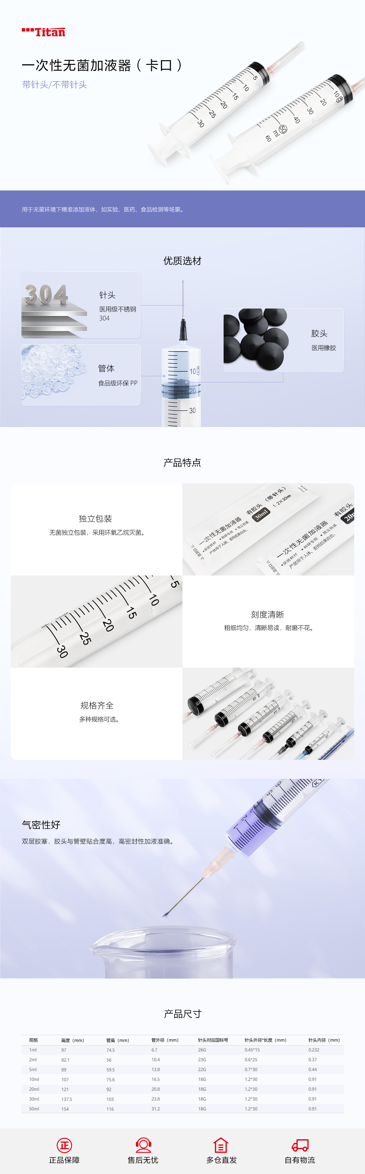 实验耗材 一次性无菌加液器 10ml 有胶头(不带针头) 独立包装 科研专用 禁止用于人体|10mL|Titan/泰坦