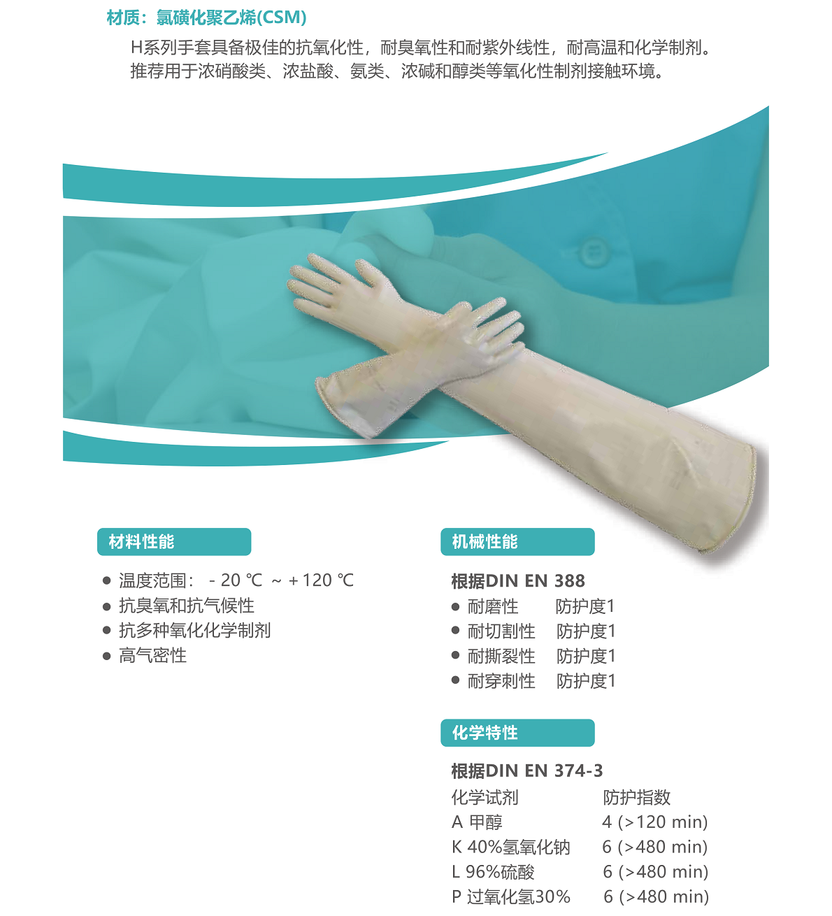 德国进口(JUGITEC)H系列隔离器手套 氯磺化聚乙烯(CSM)材质 袖口直径200mm 长度800mm 厚度0.4mm|袖口直径200mm|RotAdler/罗特德勒