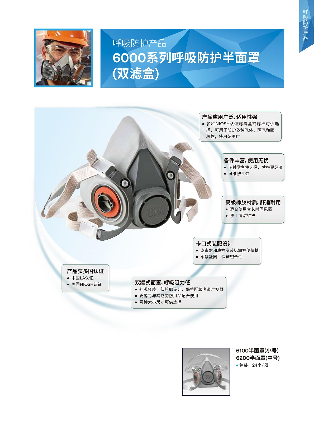 6006CN滤毒盒 | • 有机蒸气、氯气、二氧化氯、氯化氢、二氧化硫、氟化氢、硫化氢、氨气、甲胺、甲醛 | 2个/包, | 03002447(小包装)03003893(大包装) | ||