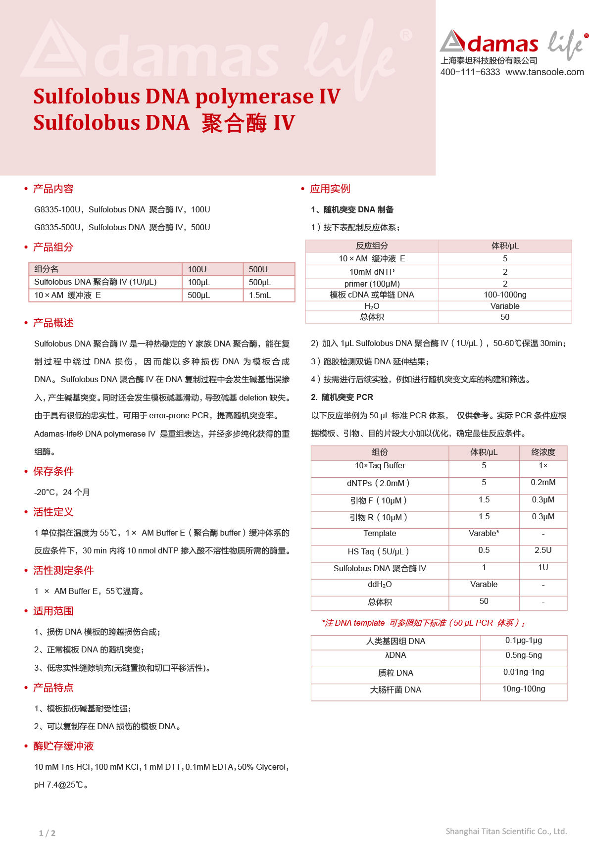 Sulfolobus DNA 聚合酶IV|Sulfolobus DNA polymerase IV|Adamas life|500 U