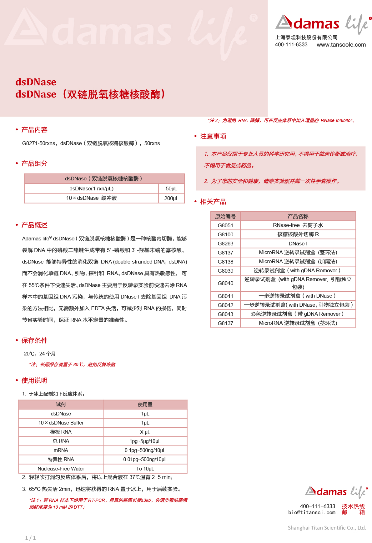 dsDNase (双链脱氧核糖核酸酶)|dsDNase|Adamas life|50 rxns