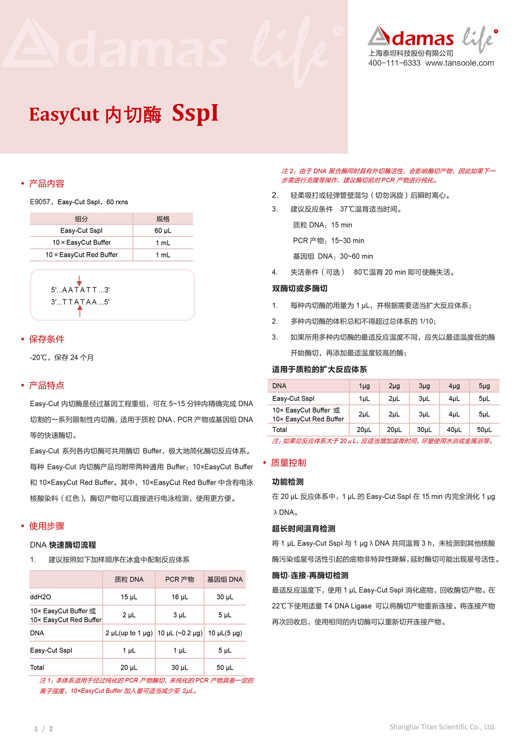Easy-Cut内切酶 SspI|Easy-Cut SspI|Adamas life|60 rxns