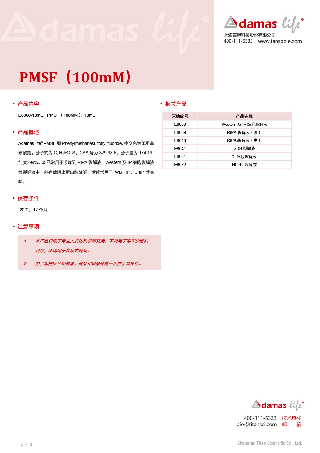 PMSF(100mM)溶液|PMSF (100mM)|Adamas life|10 mL