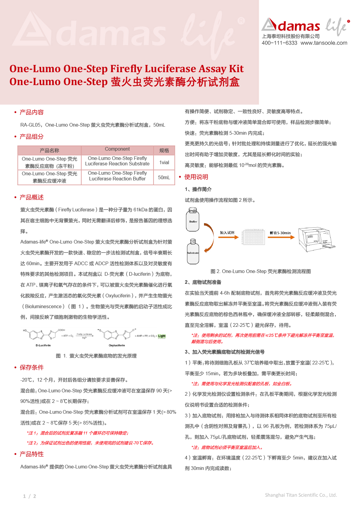 One-Lumo One-Step萤火虫荧光素酶分析试剂盒|One-Lumo One-Step Firefly Luciferase Assay Kit|Adamas life|50 mL