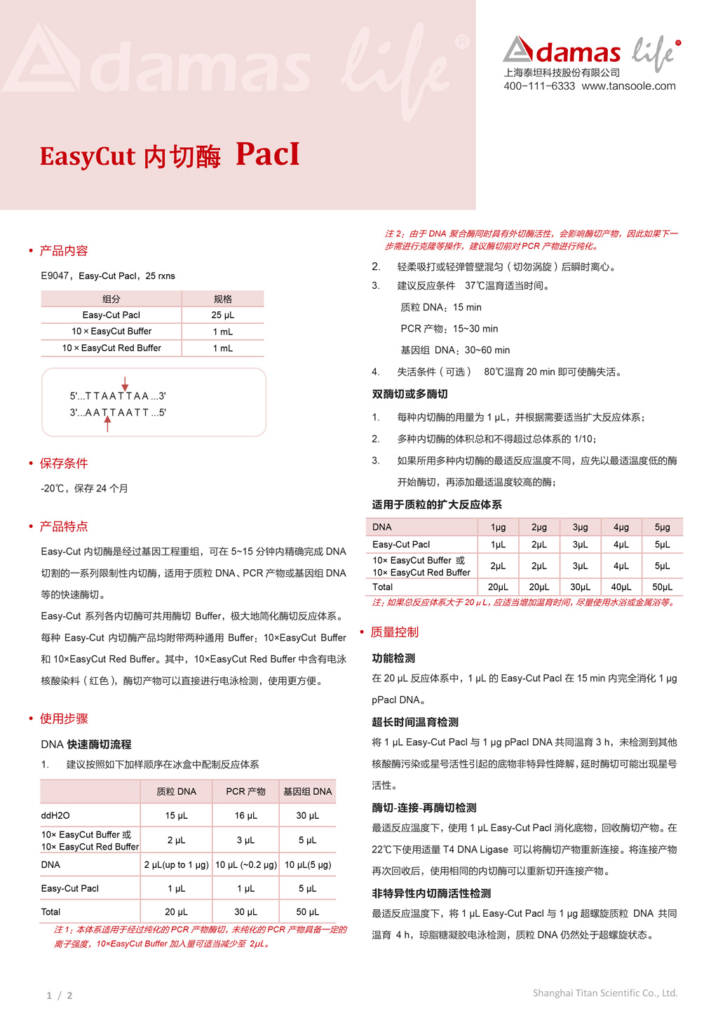 Easy-Cut内切酶 PacI|Easy-Cut PacI|Adamas life|25 rxns