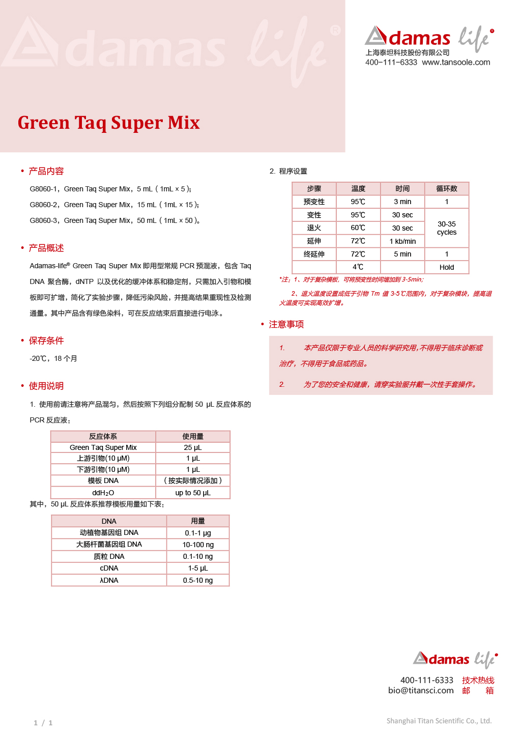 绿色 Taq Super Mix|Green Taq Super Mix|Adamas life|50 mL