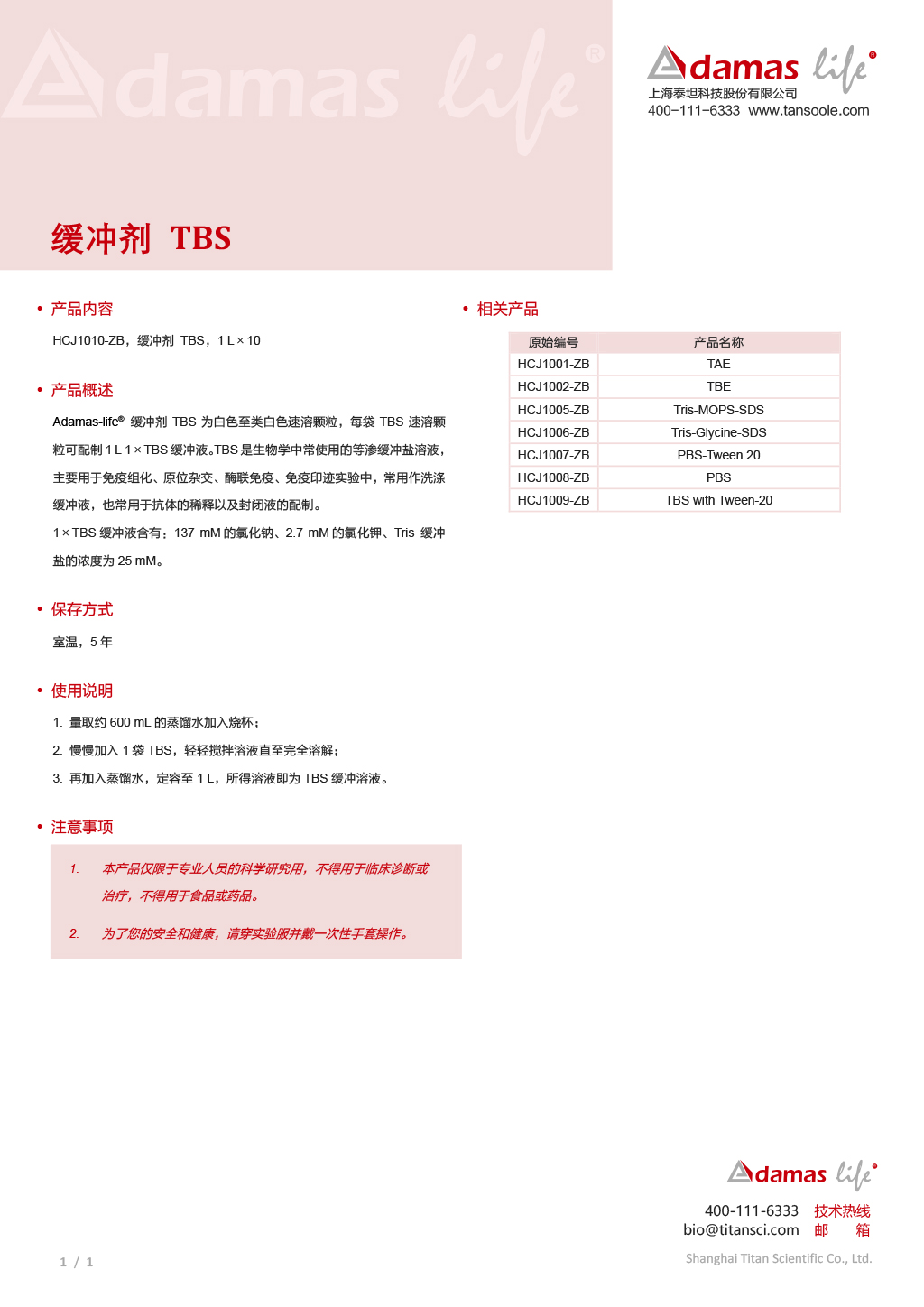 缓冲剂 TBS|TBS(premixed granules)|Adamas life|1包(10袋/包)