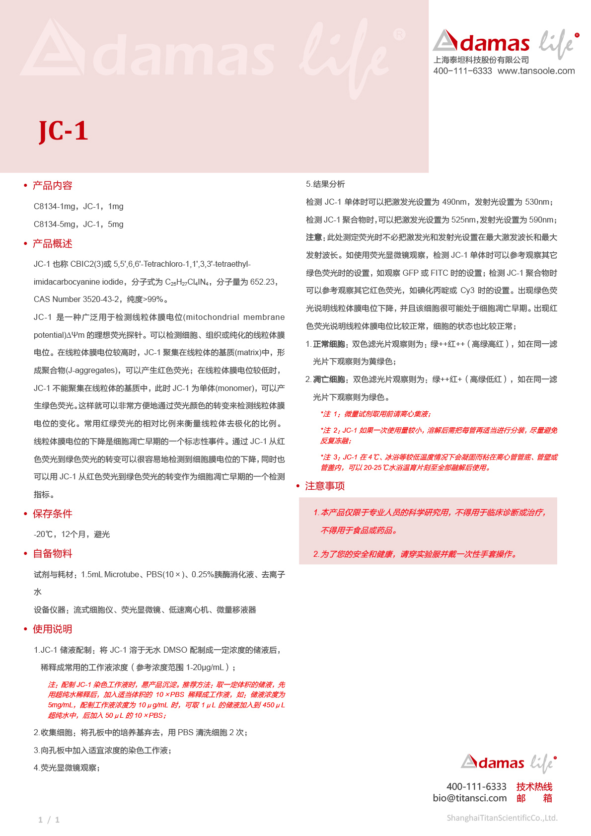 JC-1线粒体膜电位荧光探针|JC-1|Adamas life|1 mg