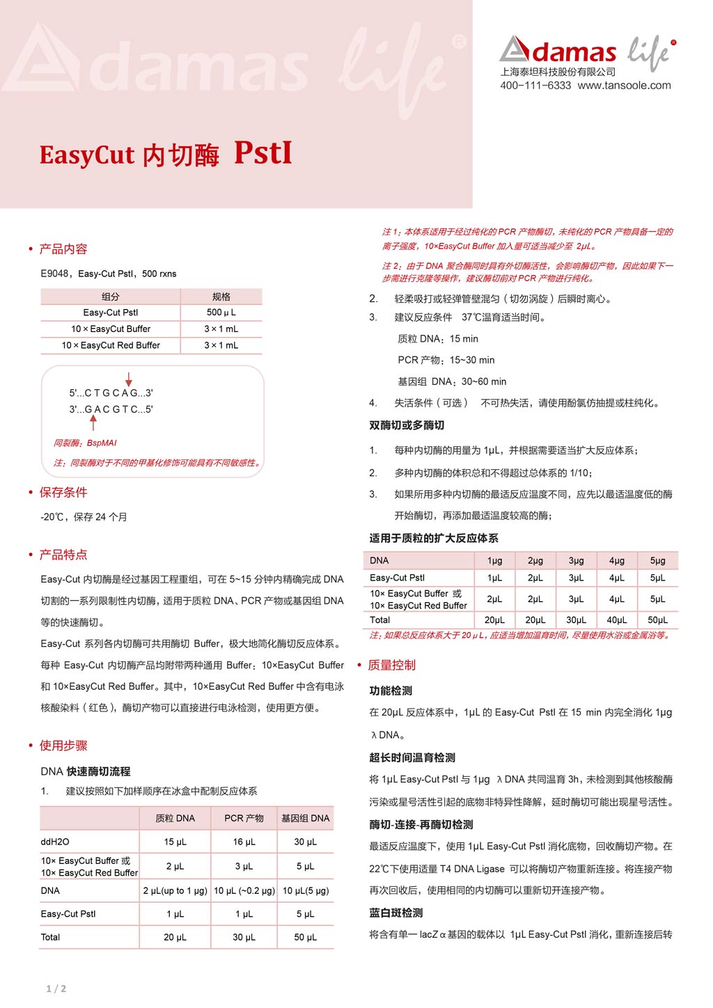 Easy-Cut内切酶 PstI|Easy-Cut PstI|Adamas life|500 rxns