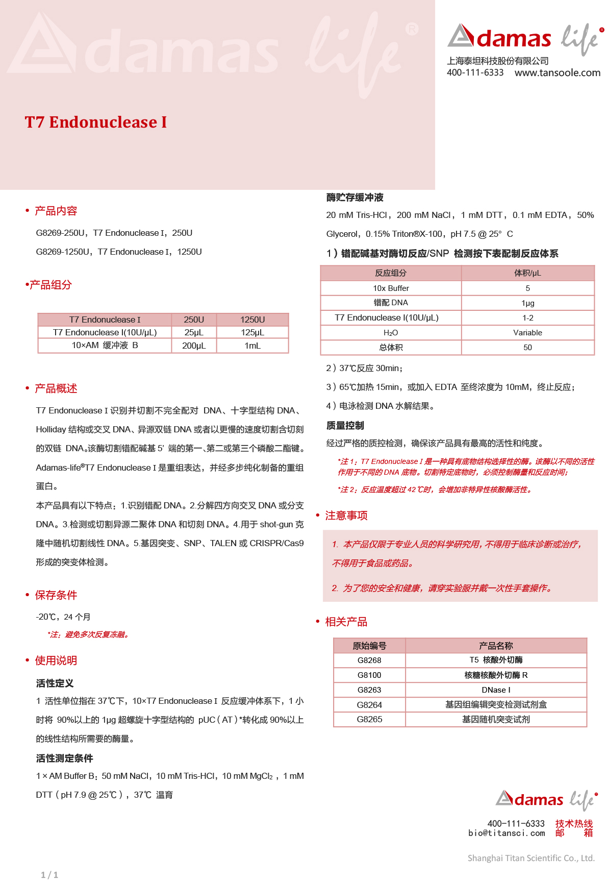 T7 内切酶 I|T7 Endonuclease I|Adamas life|1250 U