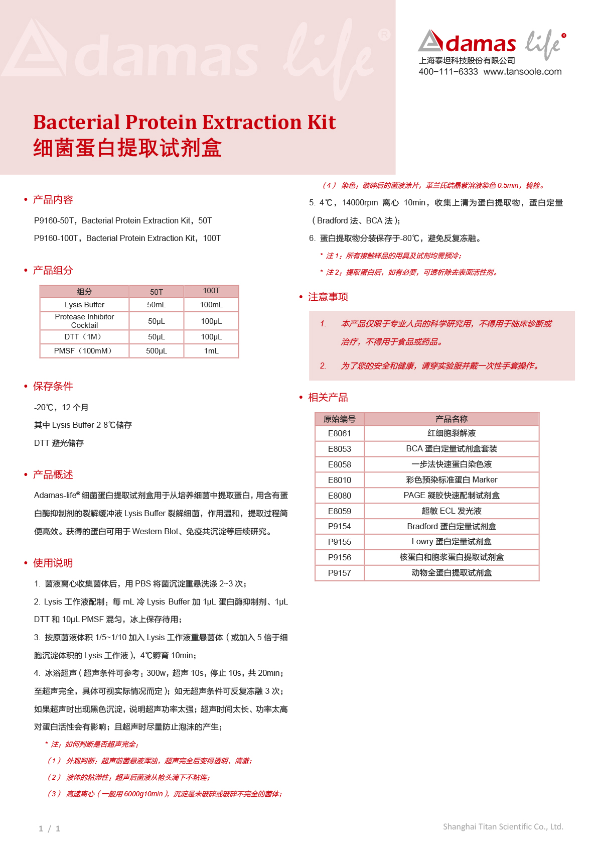 细菌蛋白提取试剂盒|Bacterial Protein Extraction Kit|Adamas life|100 T