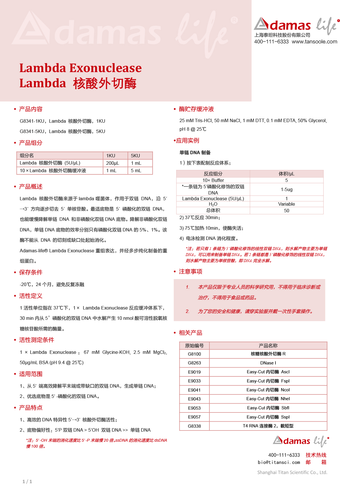 Lambda 核酸外切酶|Lambda Exonuclease|Adamas life|5 KU