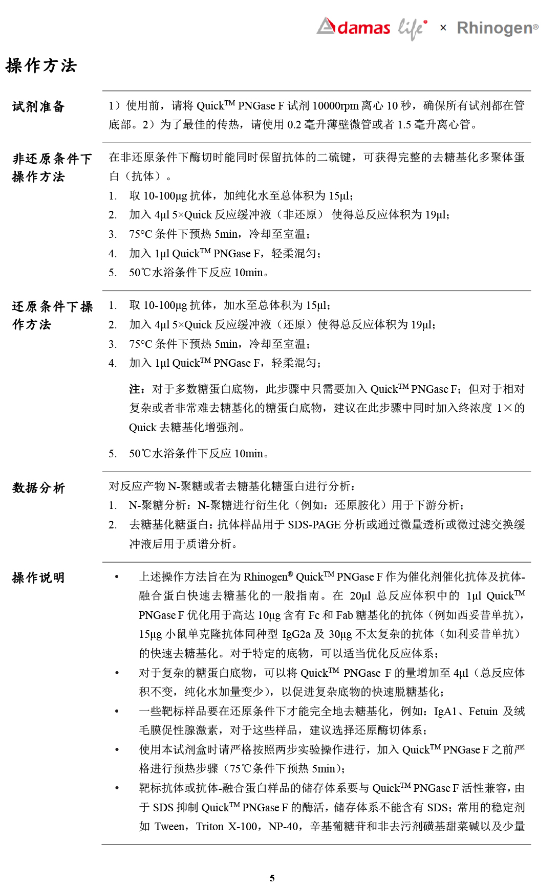 快速糖苷酶PNGase F套装|Adamas life|5×30次反应