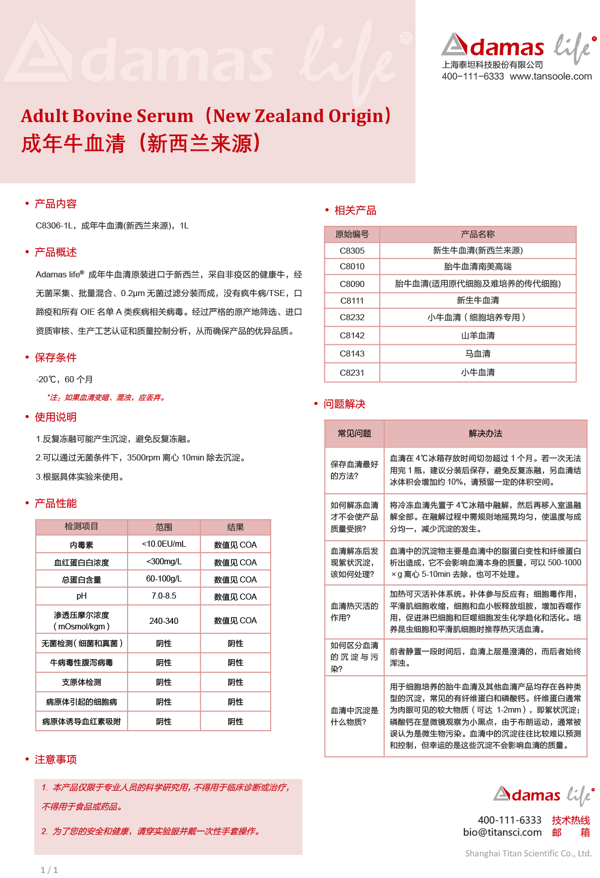 成年牛血清 (新西兰来源)|Adult Bovine Serum (New Zealand Origin)|Adamas life|1 L