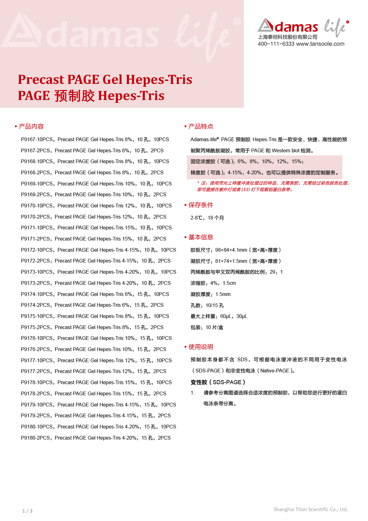 PAGE预制胶 Hepes-Tris 8%, 10孔, 玻璃板|Precast PAGE Gel Hepes-Tris 8%, 10 Wells, Glass|Adamas life|2 PCS