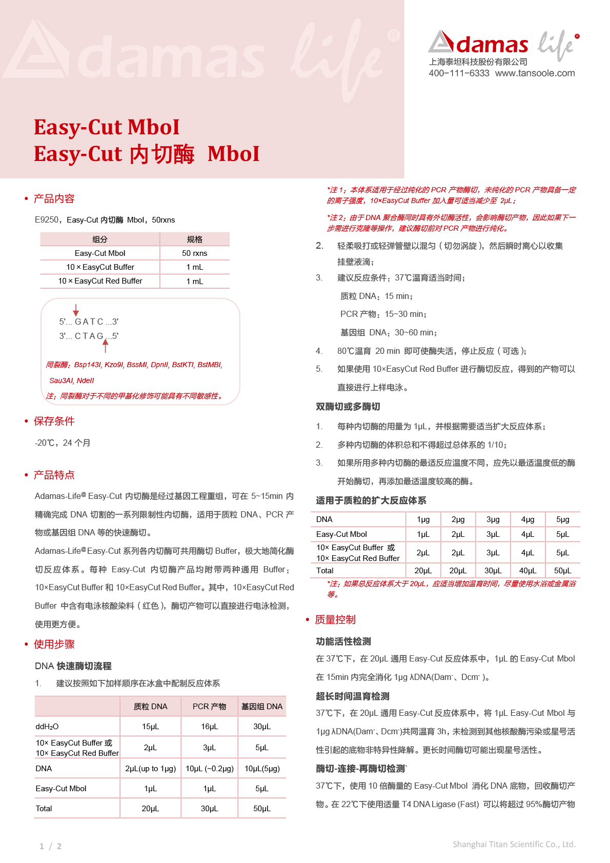 Easy-Cut内切酶 MboI|Easy-Cut MboI|Adamas life|50 rxns