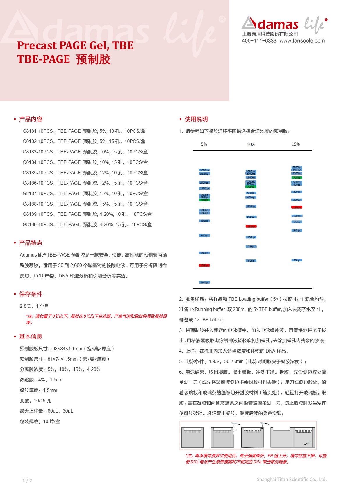 TBE-PAGE 预制胶, 4-20%, 10孔|Precast PAGE Gel, TBE, 4-20%, 10wells|Adamas life|10 PCS