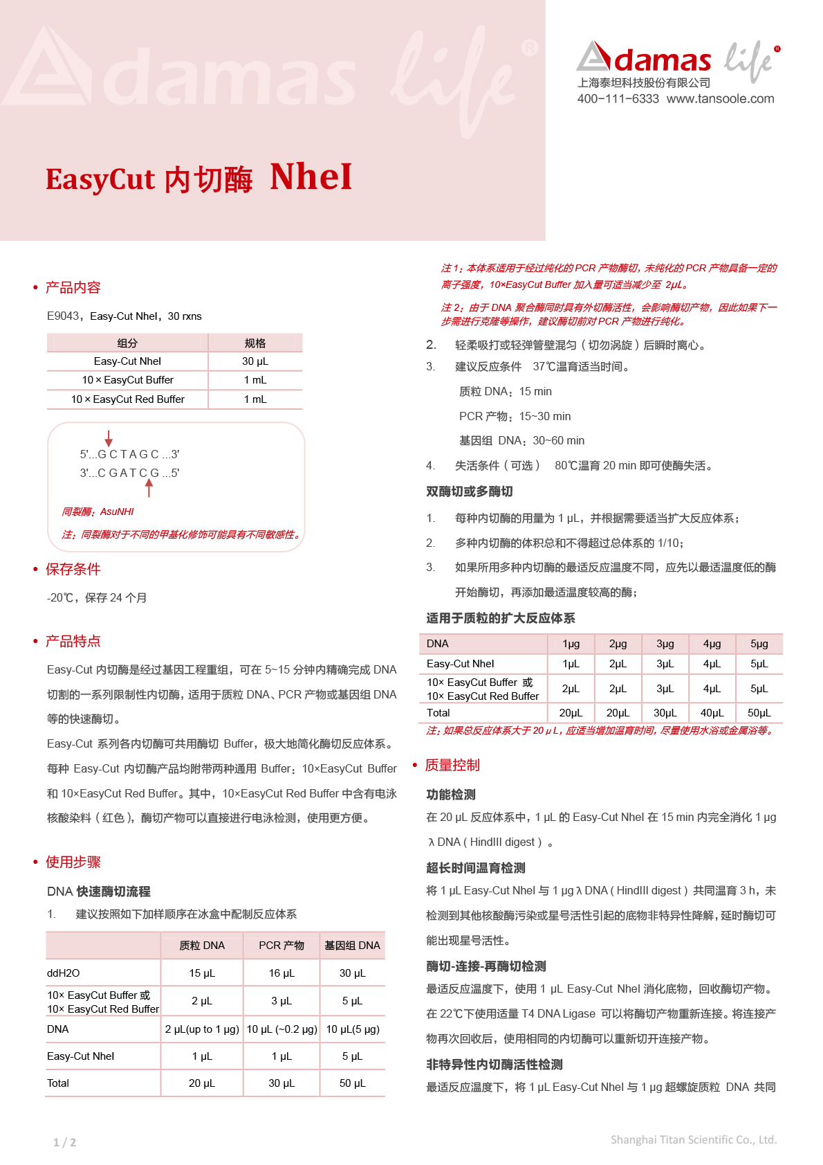 Easy-Cut内切酶 NheI|Easy-Cut NheI|Adamas life|30 rxns