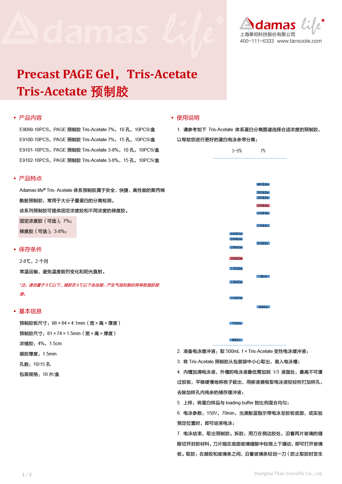 PAGE 预制胶, Tris-Acetate 7%, 10孔|Precast PAGE Gel, Tris-Acetate 7%, 10wells|Adamas life|10 PCS