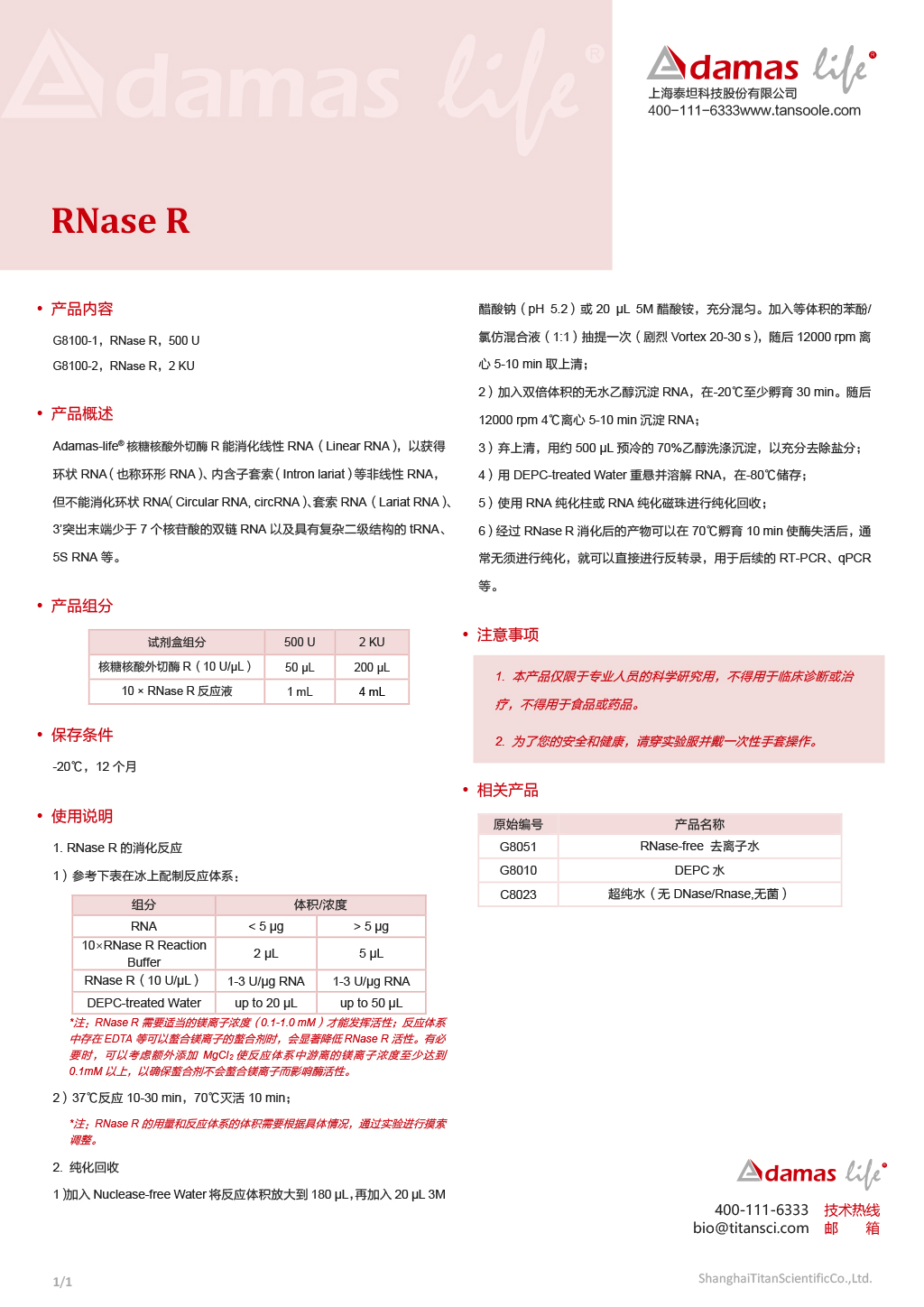 核糖核酸外切酶R|RNase R|Adamas life|2 KU