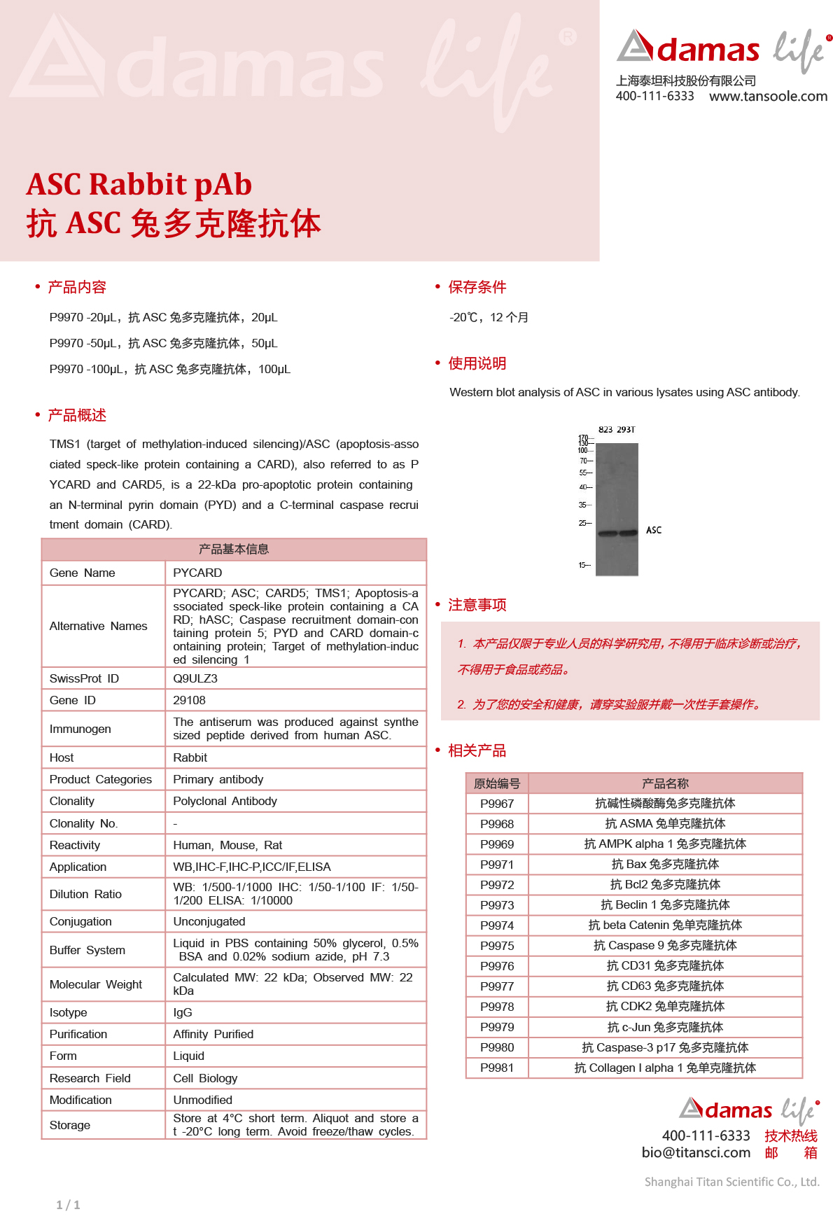 抗ASC兔多克隆抗体|ASC Rabbit pAb|Adamas life|20 μL
