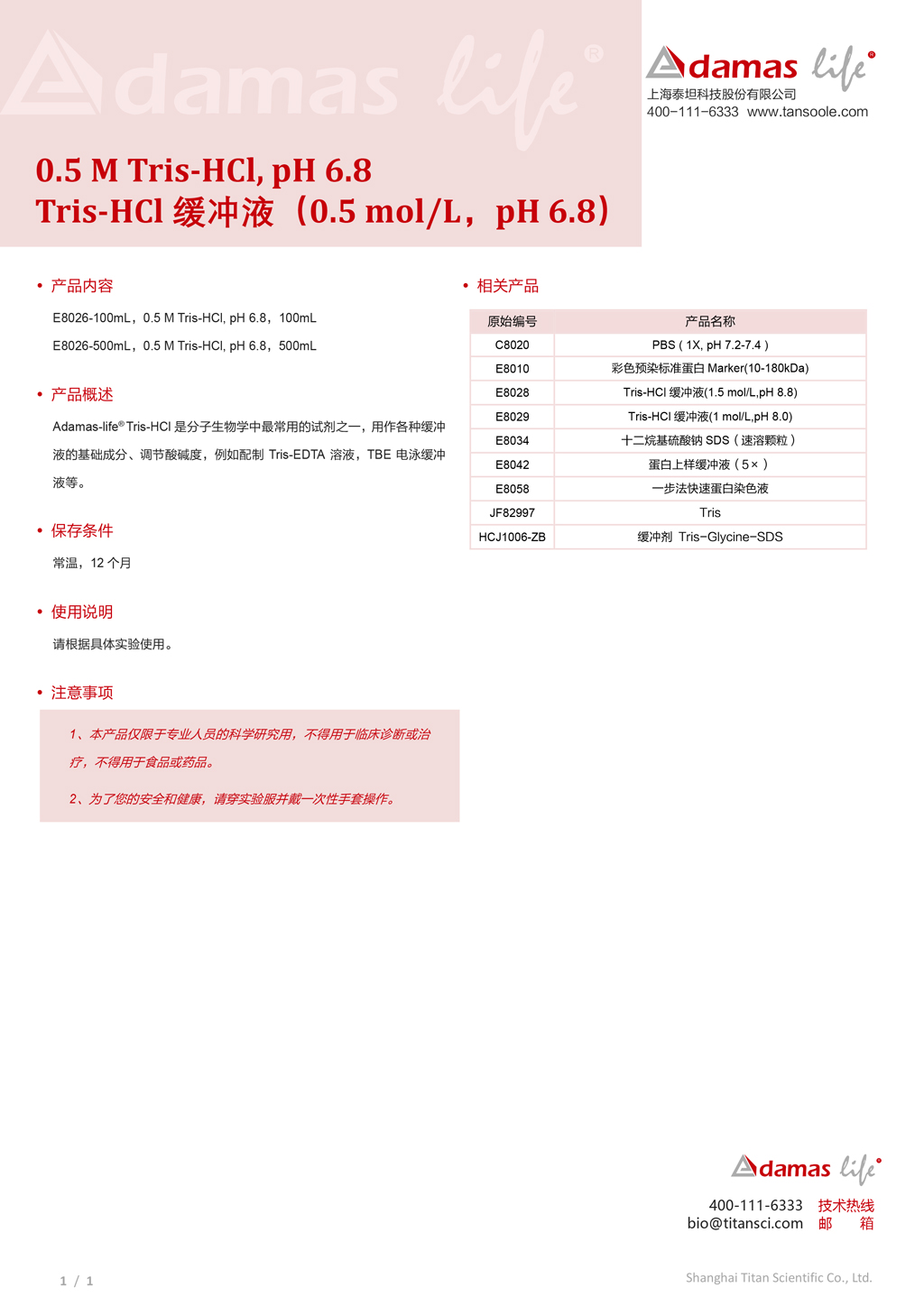 阿达玛斯 - 生命科学(Adamas-life®)自 2020 年成立以来,始终深耕高端生物试剂领域,致力于为生物医药、临床诊断、食品环境、基础科研等多行业提供全流程解决方案,是国内生命科学试剂行业的创新引领者。