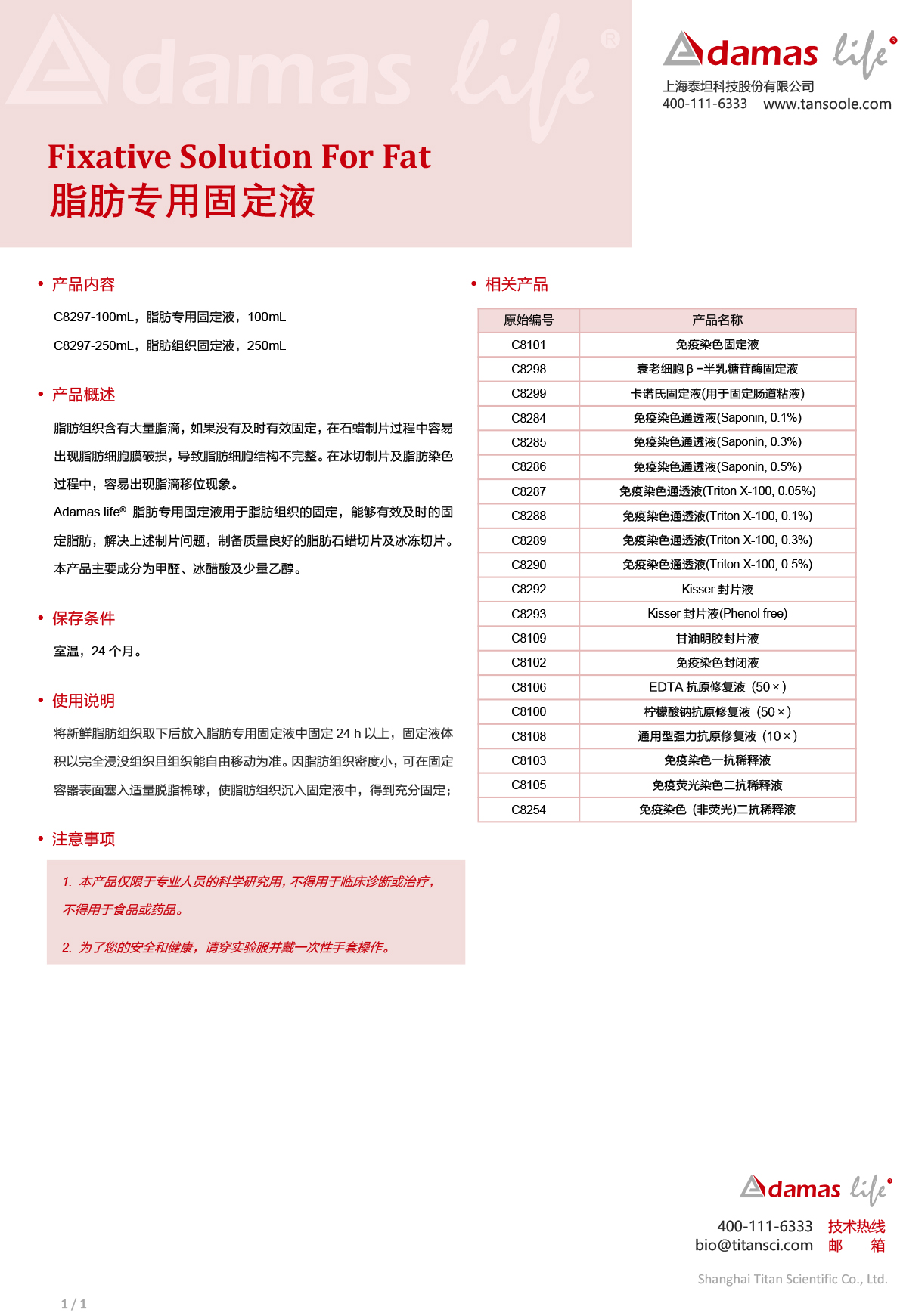 脂肪专用固定液|Fixative Solution For Fat|Adamas life|100 mL