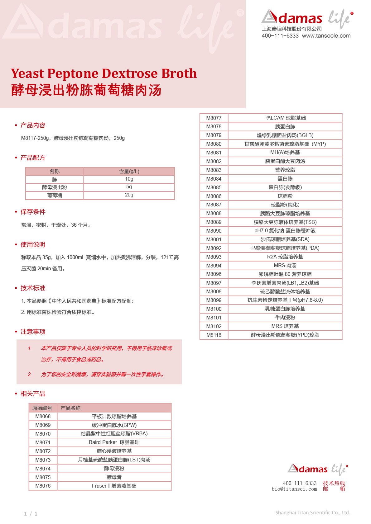 酵母浸出粉胨葡萄糖肉汤|Yeast Peptone Dextrose Broth|Adamas life|250 g