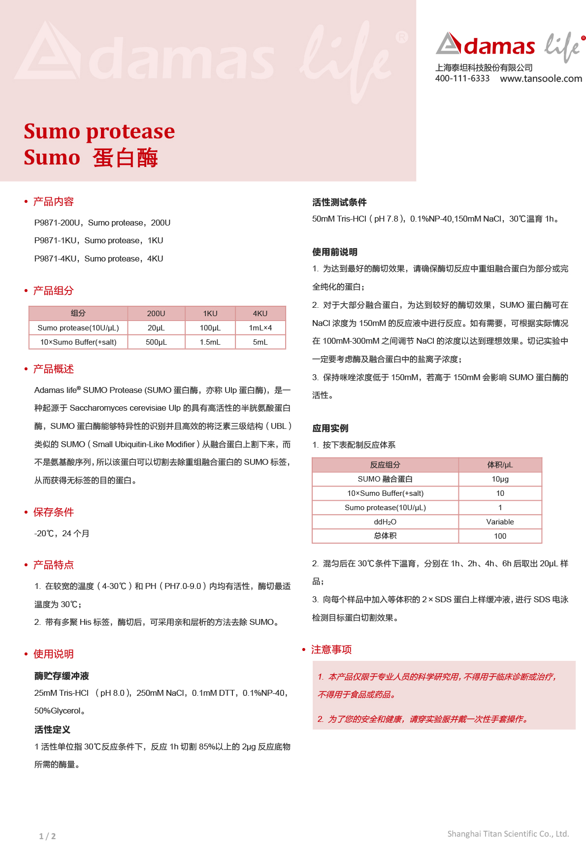 Sumo 蛋白酶|Sumo protease|Adamas life|4 KU