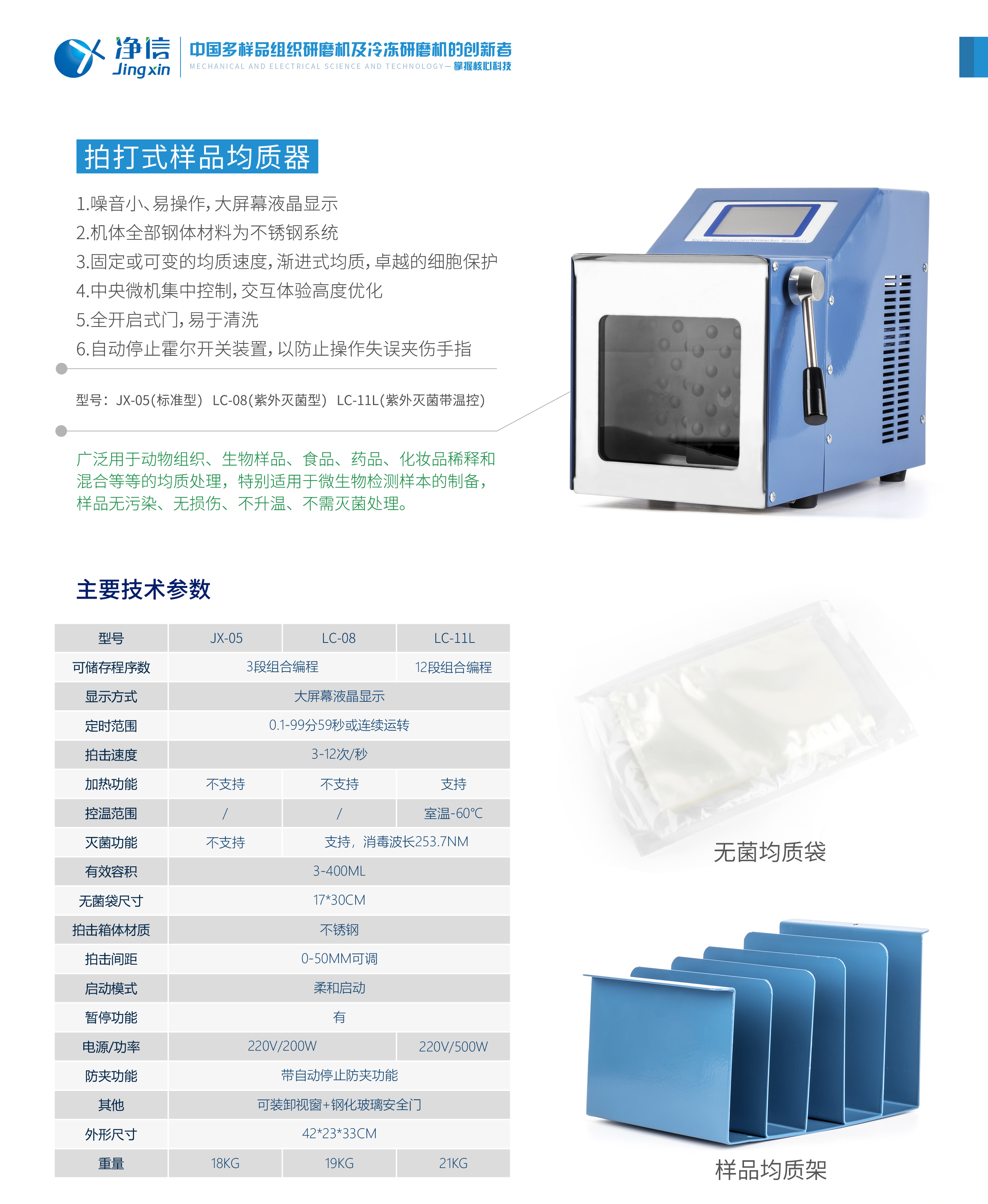 拍打式样品均质器(紫外灭菌型)3~12次/秒 3~400ml|LC-08|上海净信