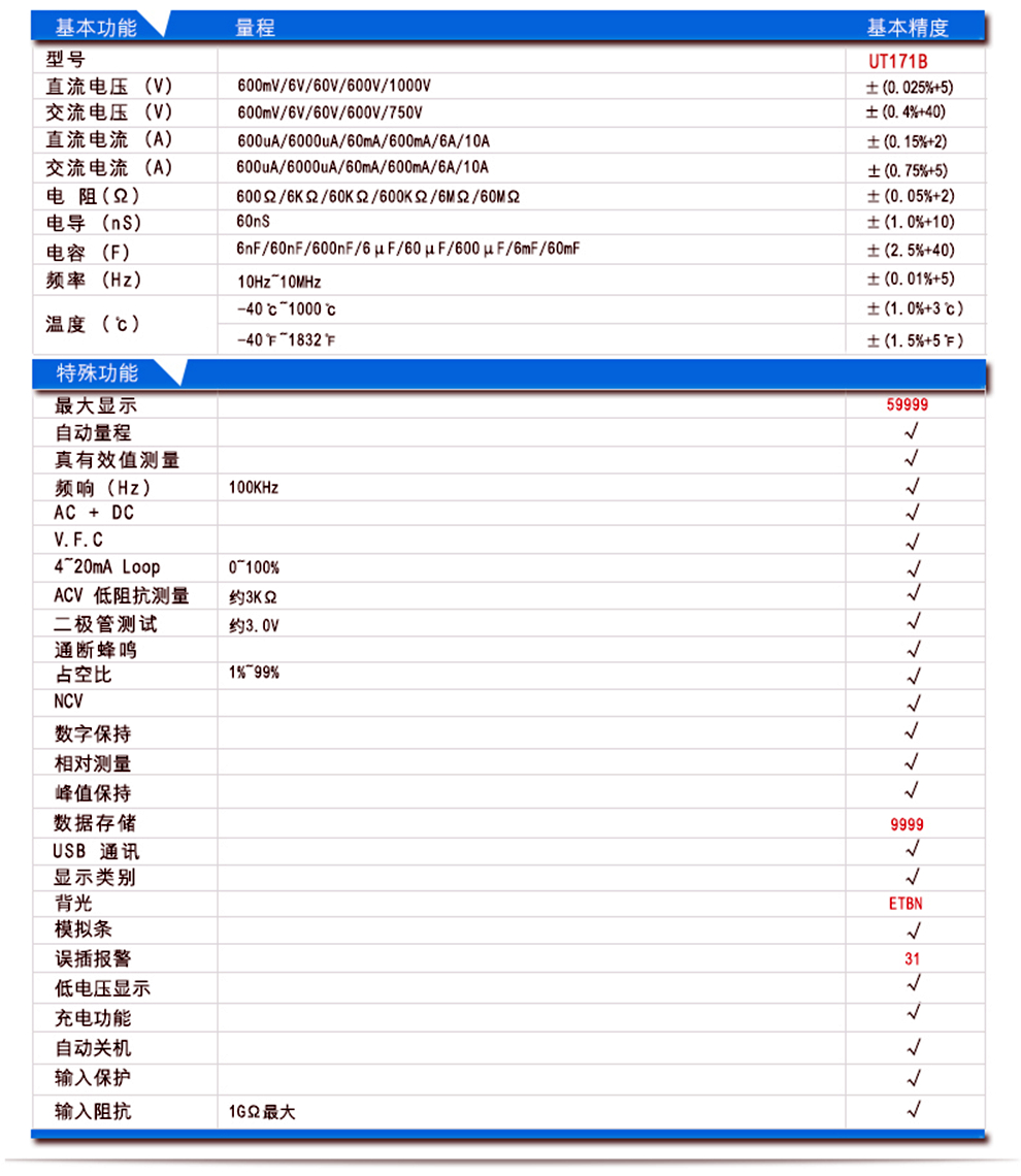 工业级真有效值万用表|UT171B|优利德/UNI-T