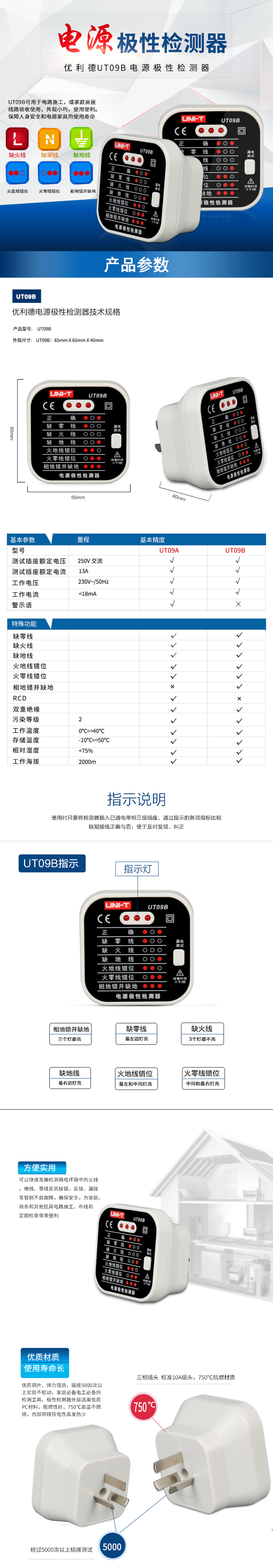 插座测试仪|UT09B|优利德/UNI-T