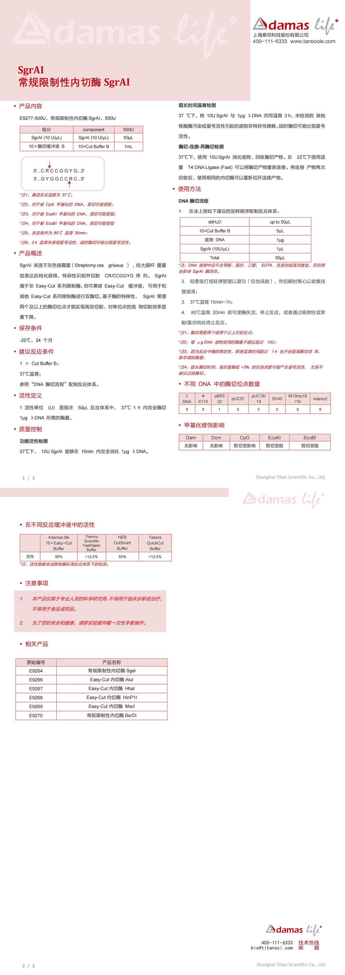 常规限制性内切酶SgrAI|SgrAI|Adamas life|500 U