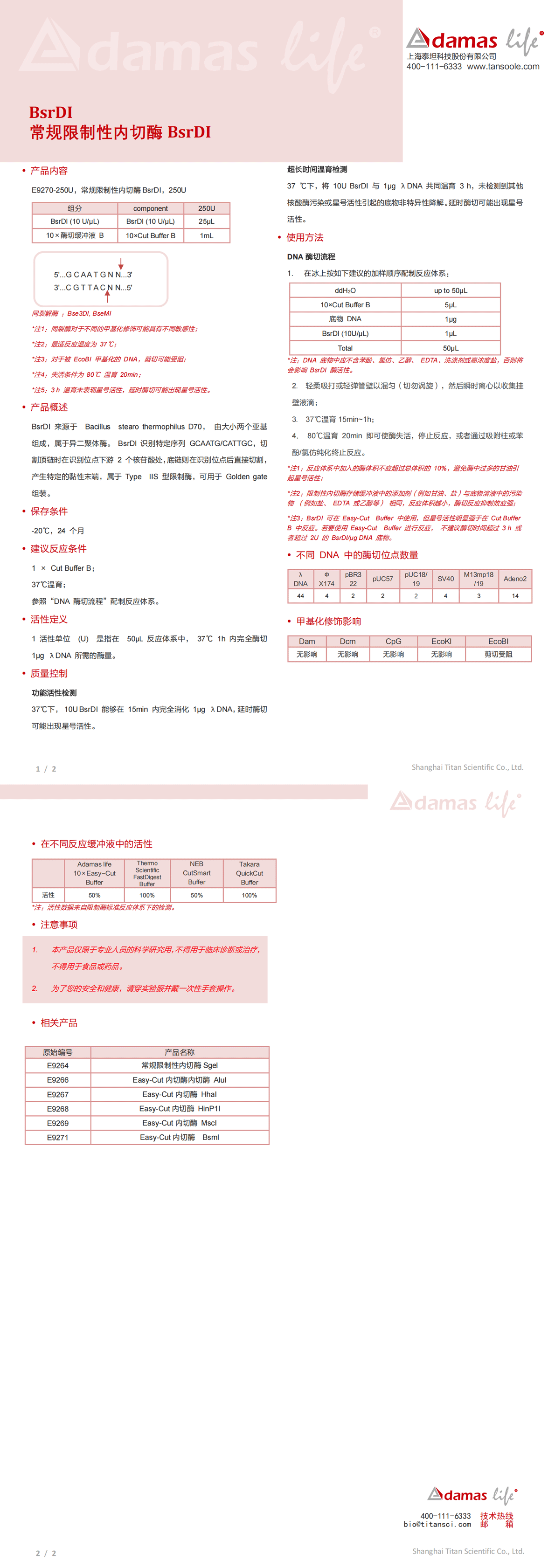 常规限制性内切酶BsrDI|BsrDI|Adamas life|250 U