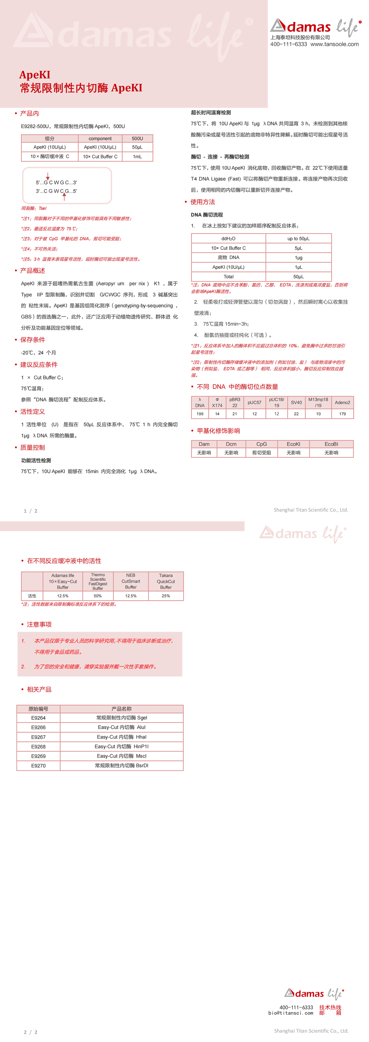 常规限制性内切酶ApeKI|ApeKI|Adamas life|500 U
