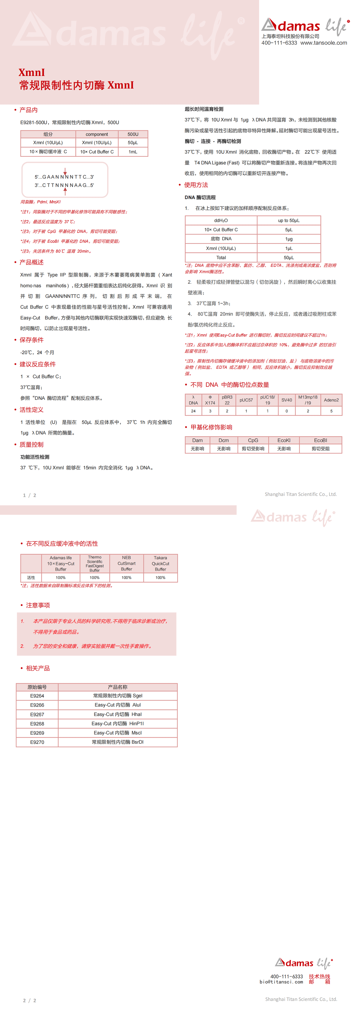 常规限制性内切酶XmnI|XmnI|Adamas life|500 U