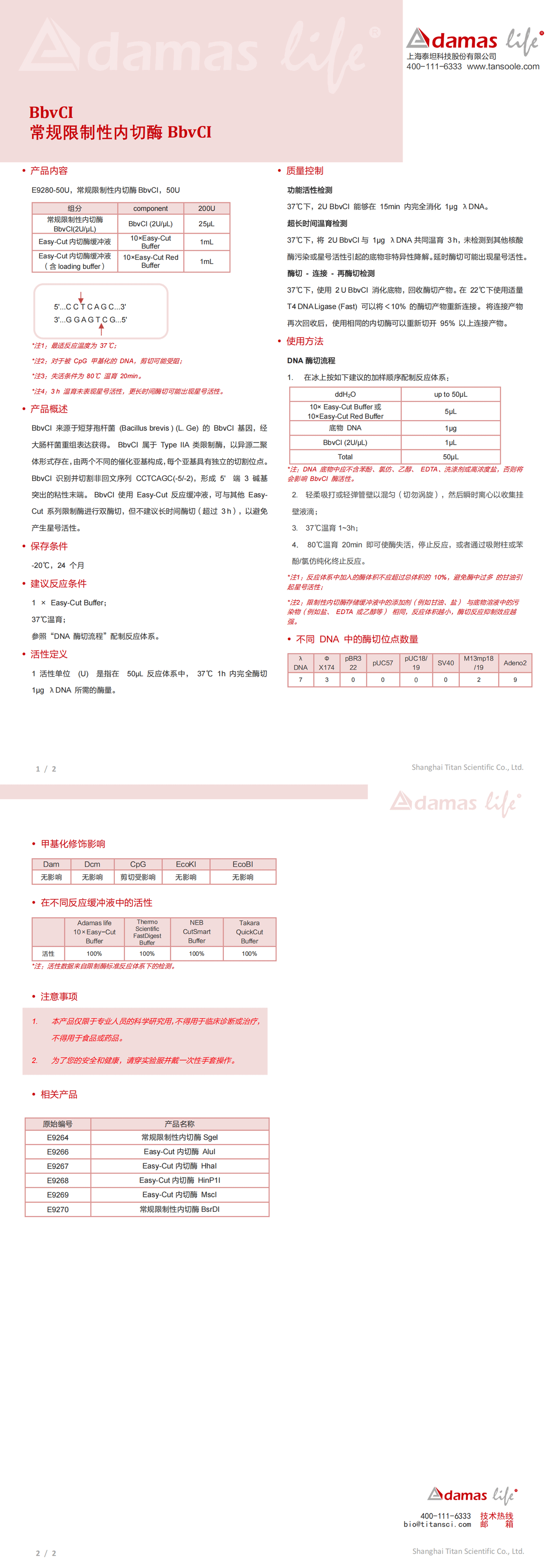 常规限制性内切酶BbvCI|BbvCI|Adamas life|50 U